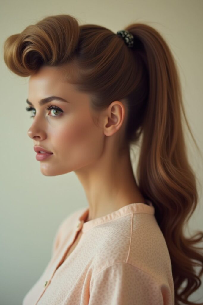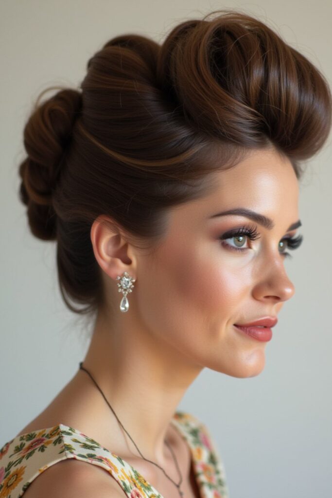 The Half-Up Bouffant gives you height and softness all in one. Tease the top half of your hair for volume and pin it back, leaving the rest loose.