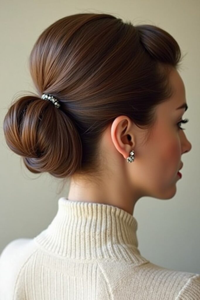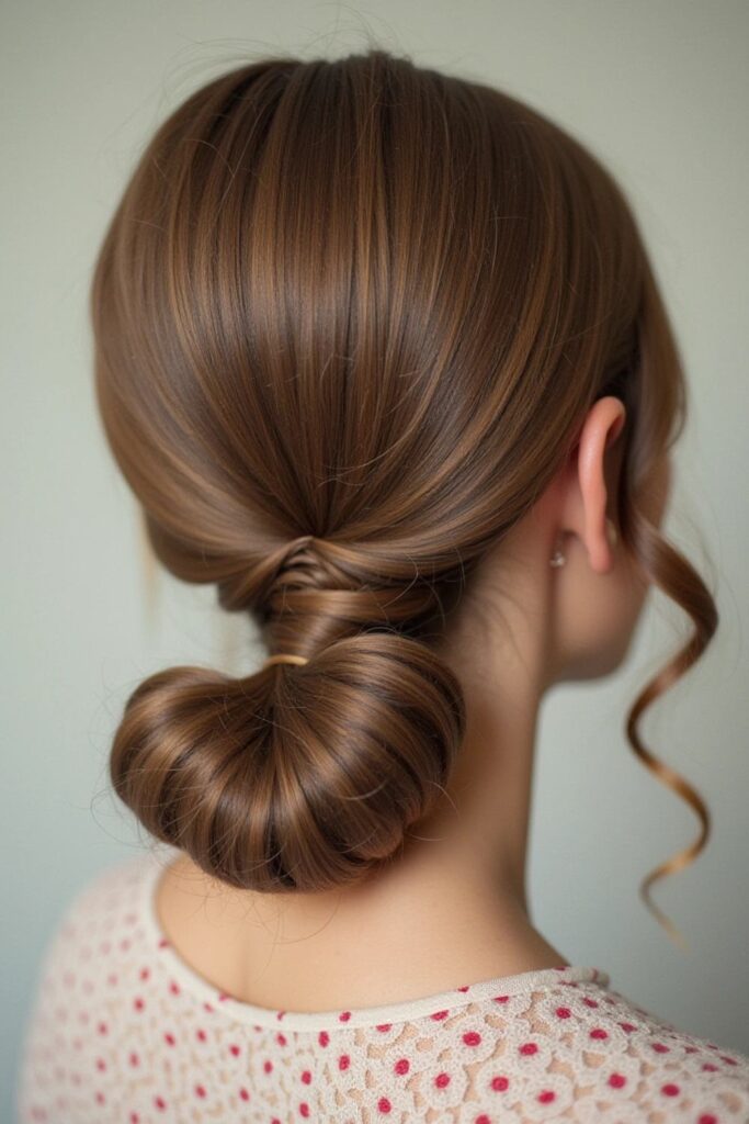 The French Twist is an elegant updo that’s easy to create. Gather your hair at the back, twist it upward, and secure it with bobby pins.