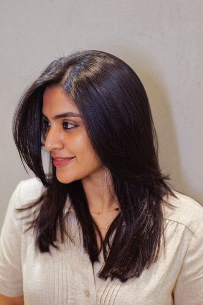 Finish with a lightweight shine spray for a polished appearance. This hairstyle is perfect for those who prefer styles that are sleek and sophisticated with added depth.