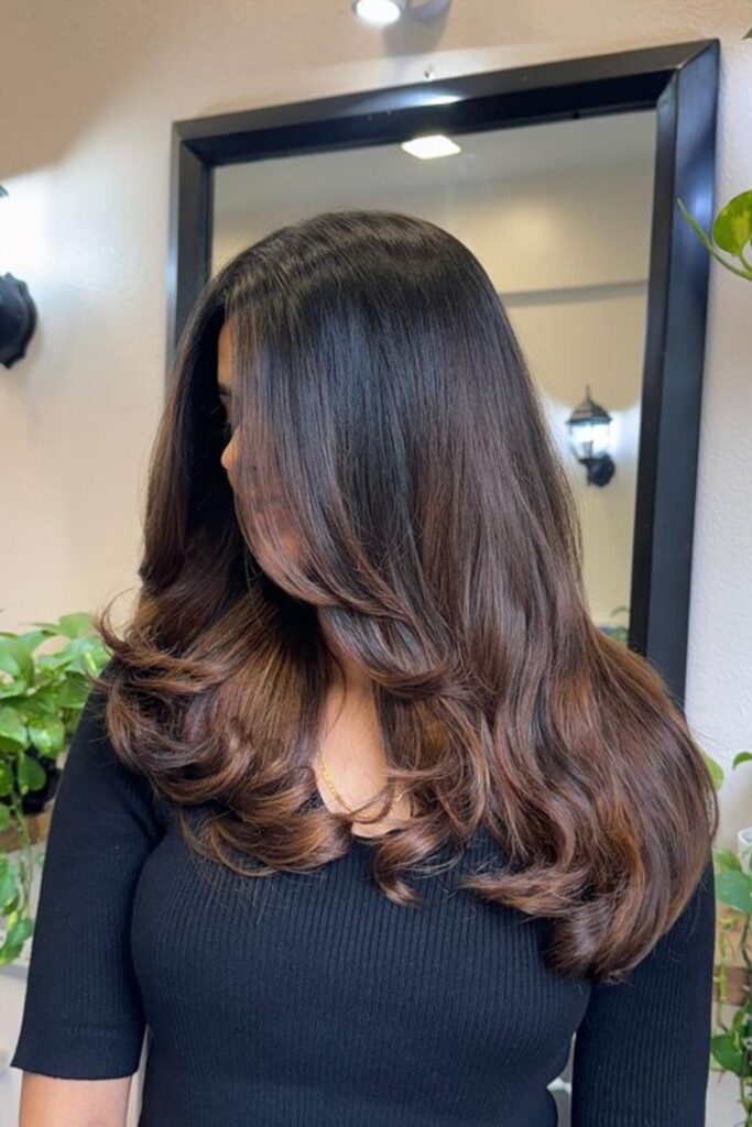 This hairstyle works well for various hair lengths and adds depth, especially to medium to thick hair.