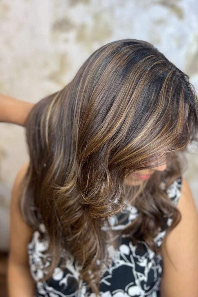 These highlights are low-maintenance since they’re not fully exposed, making them perfect for those wanting to try color without a big commitment.