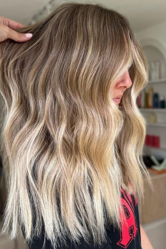 For a beachy yet refined look, consider the ashy blonde balayage waves. This style blends an ashy blonde balayage with loose waves, adding dimension and depth.
