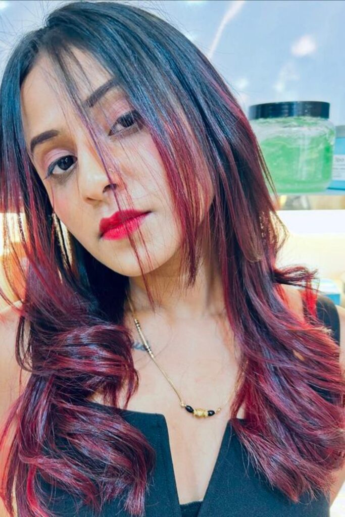 Begin by applying a burgundy hair color as your base, which sets the stage for a look that’s both rich and captivating.
