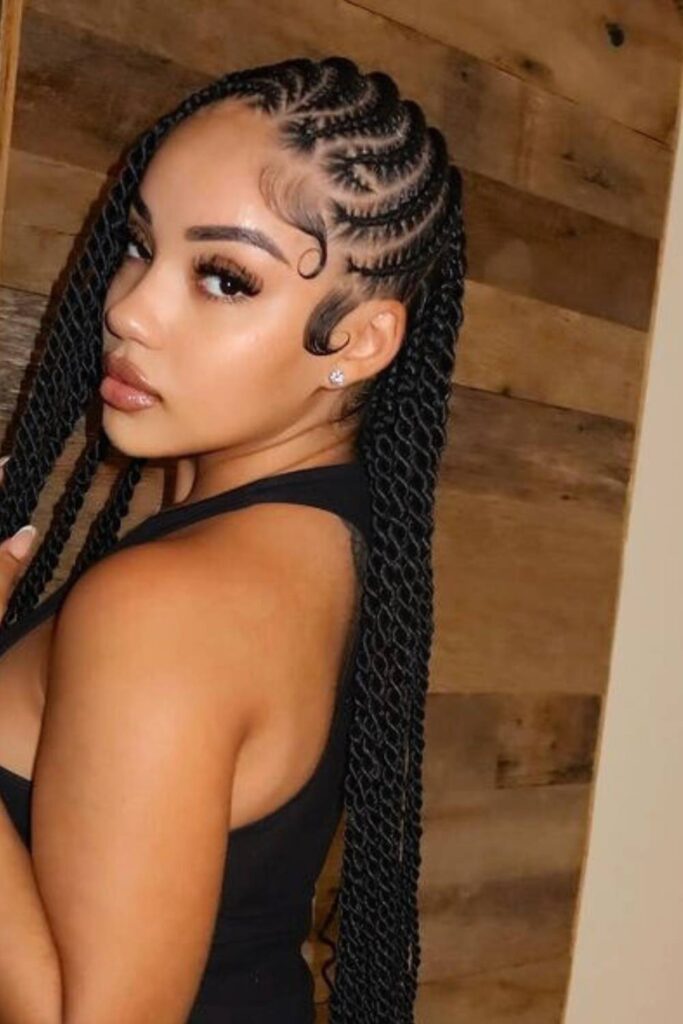 It’s a bold and confident hairstyle for anyone wanting to turn heads wherever they go. With this style, you’re not just wearing braids you’re showcasing a work of art.