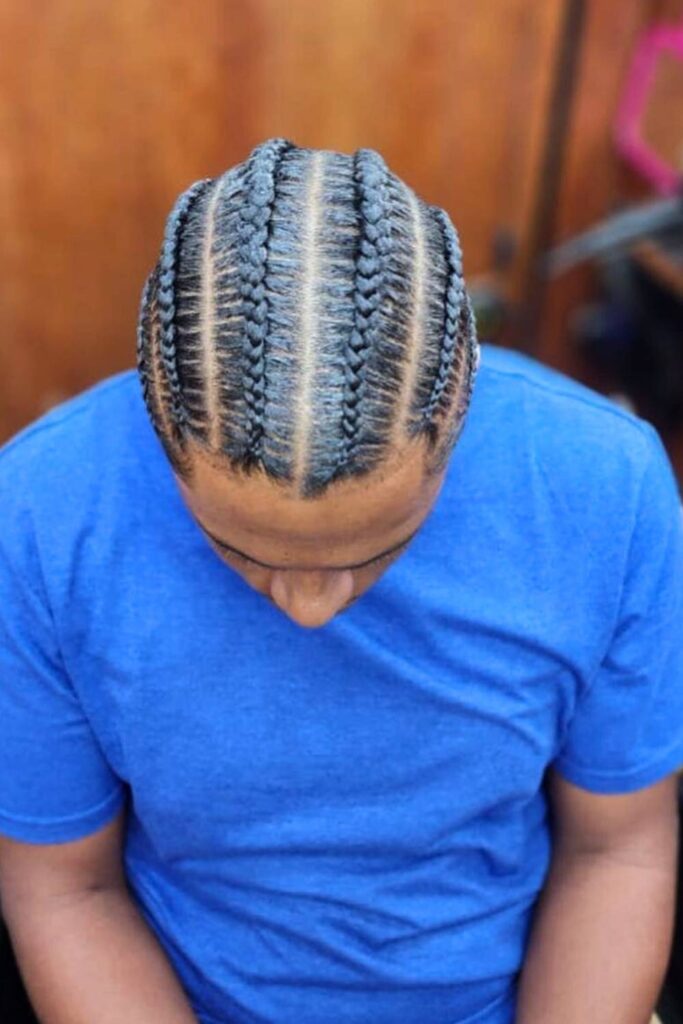 This style starts with tightly braided cornrows running from the front to the back of the head.