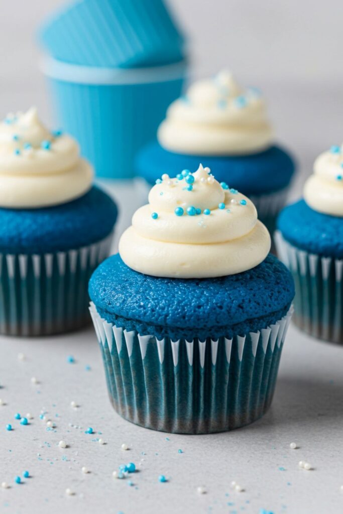 Soft, vibrant, and irresistible. These blue velvet cupcakes are a show-stopper with their deep blue hue and moist, fluffy texture.