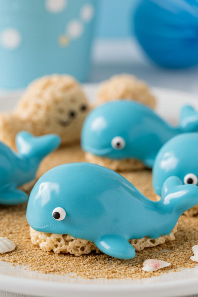 Mold classic Rice Krispie treats into adorable whale shapes, then dip them in blue icing for a smooth, glossy finish that screams nautical charm.