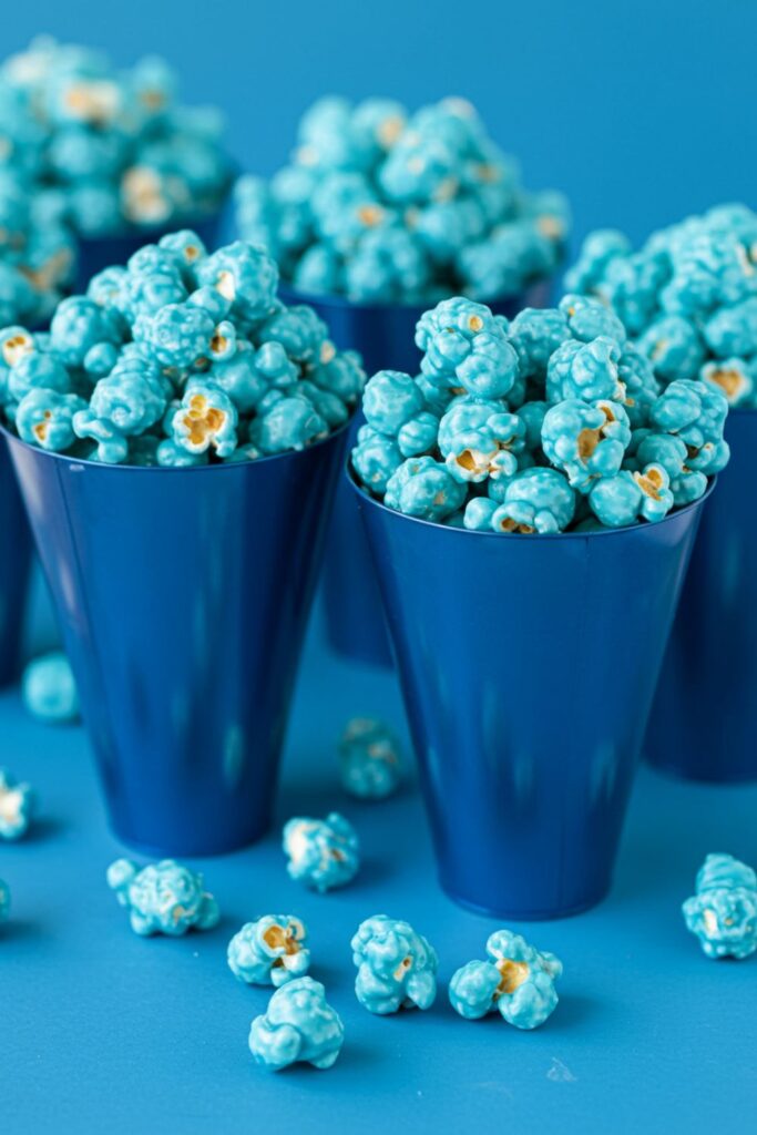 Brighten up your snack table with blue candy-coated popcorn.