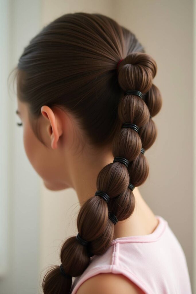 The bubble ponytail is a fun twist on the classic ponytail. Start by tying your hair into a ponytail, then add small hair ties every few inches to create “bubbles.” This style is both playful and secure, giving your hair volume and texture.