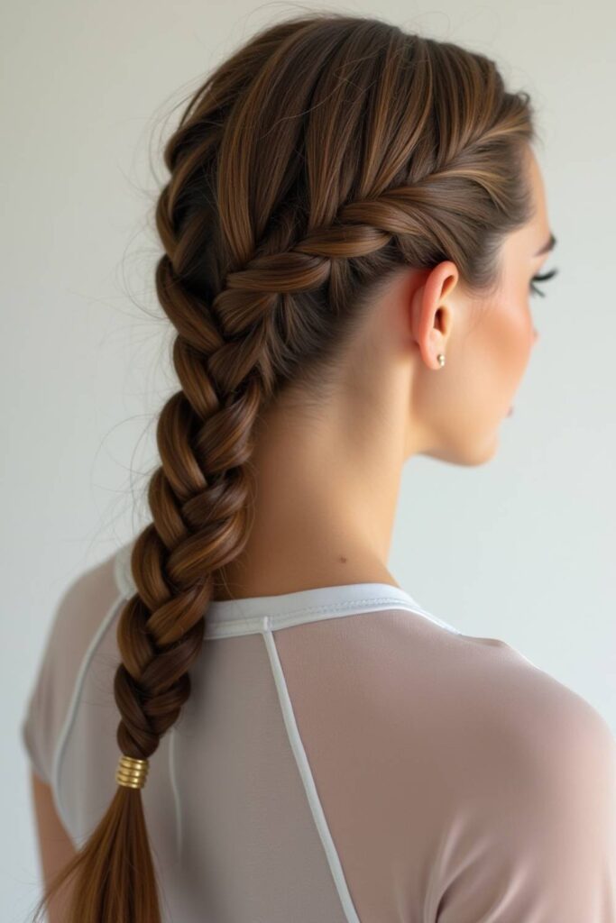 This braid not only looks stunning but also keeps hair neatly in place, handling physical movements with ease.