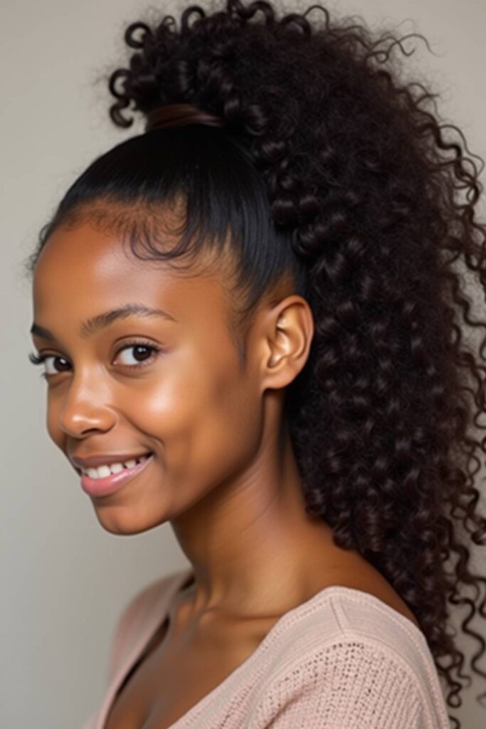 For those with naturally curly hair, the curly high ponytail is a fantastic way to show off your texture while keeping it controlled. Pull your curls into a high ponytail and secure it tightly to prevent slippage.