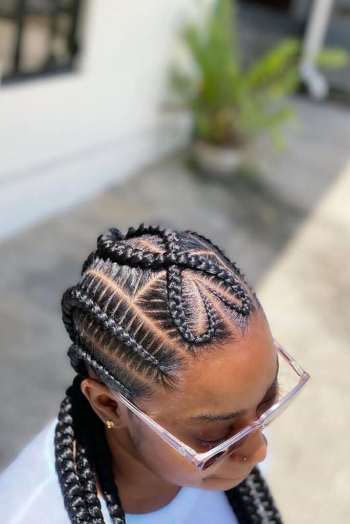 For those who love bold patterns, this crisscross cornrow style is a game-changer.