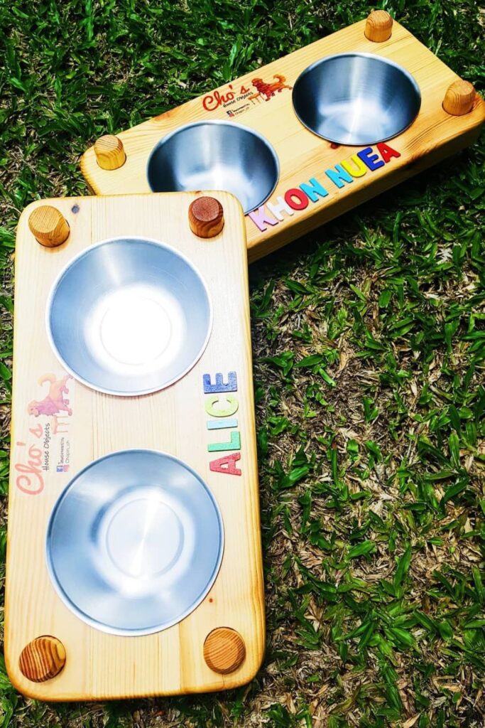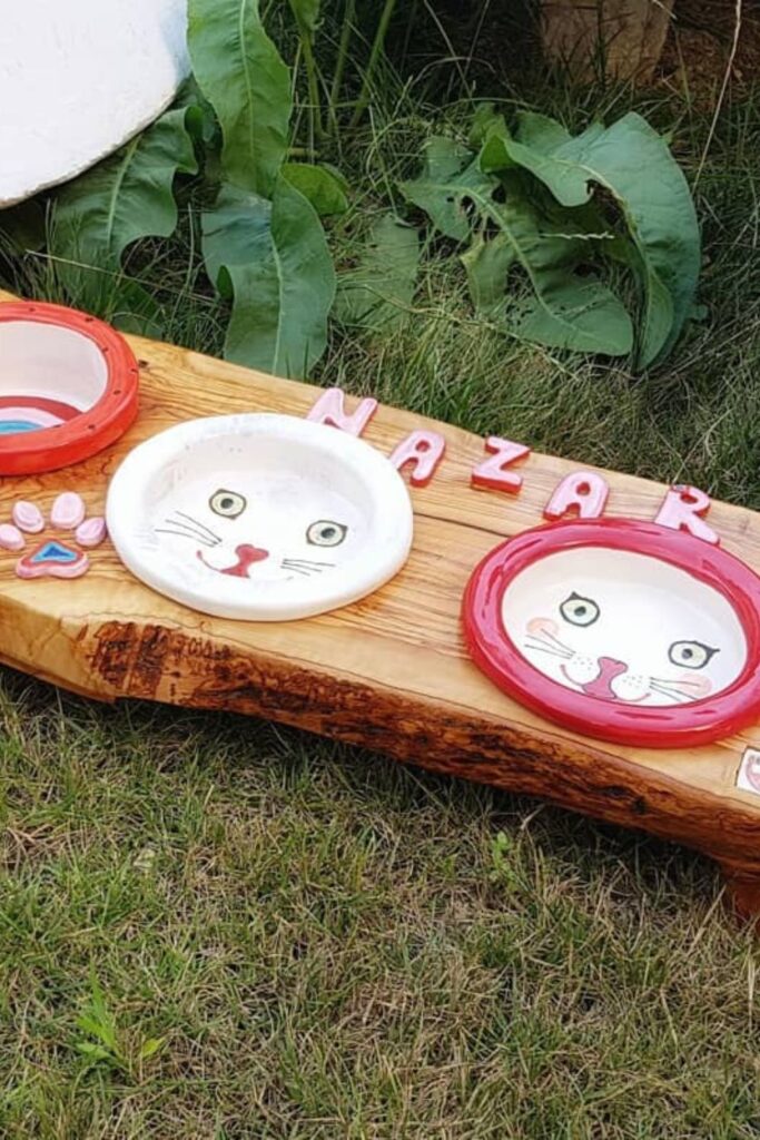 Give each pet their special space with custom wooden feeding stations. Personalize the setup with their names, vibrant paints, or engraved labels.