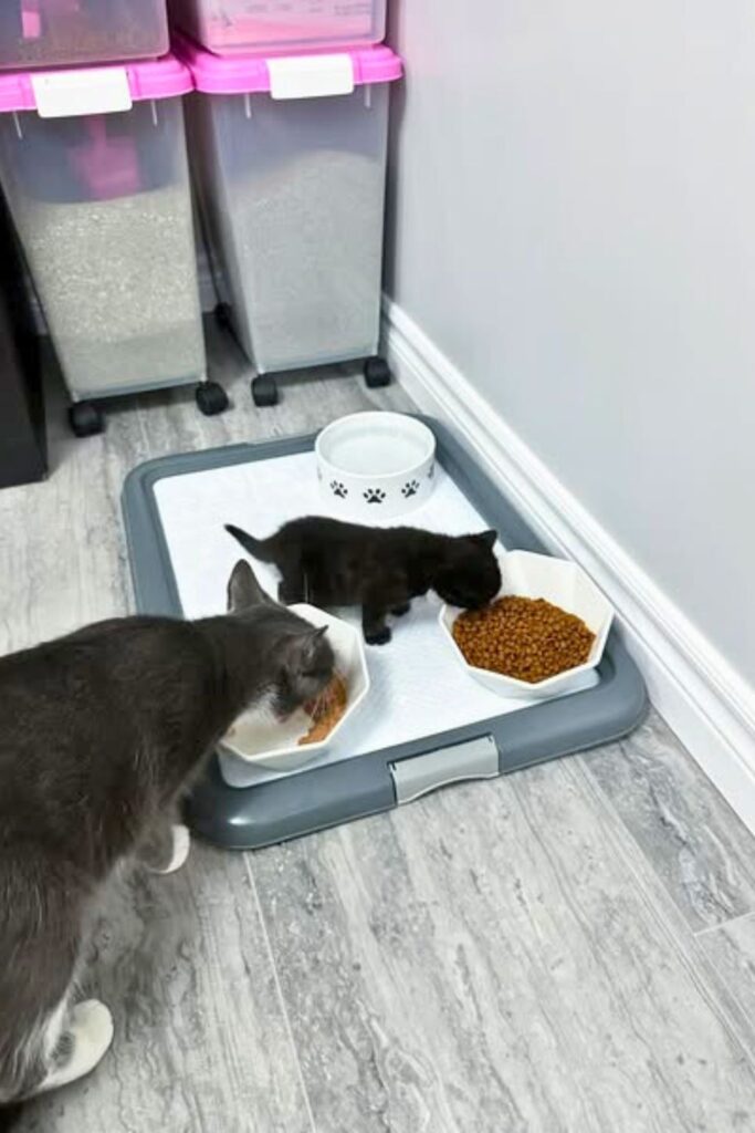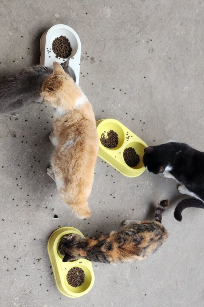 This thoughtful layout ensures each cat has its dedicated space, preventing food aggression.