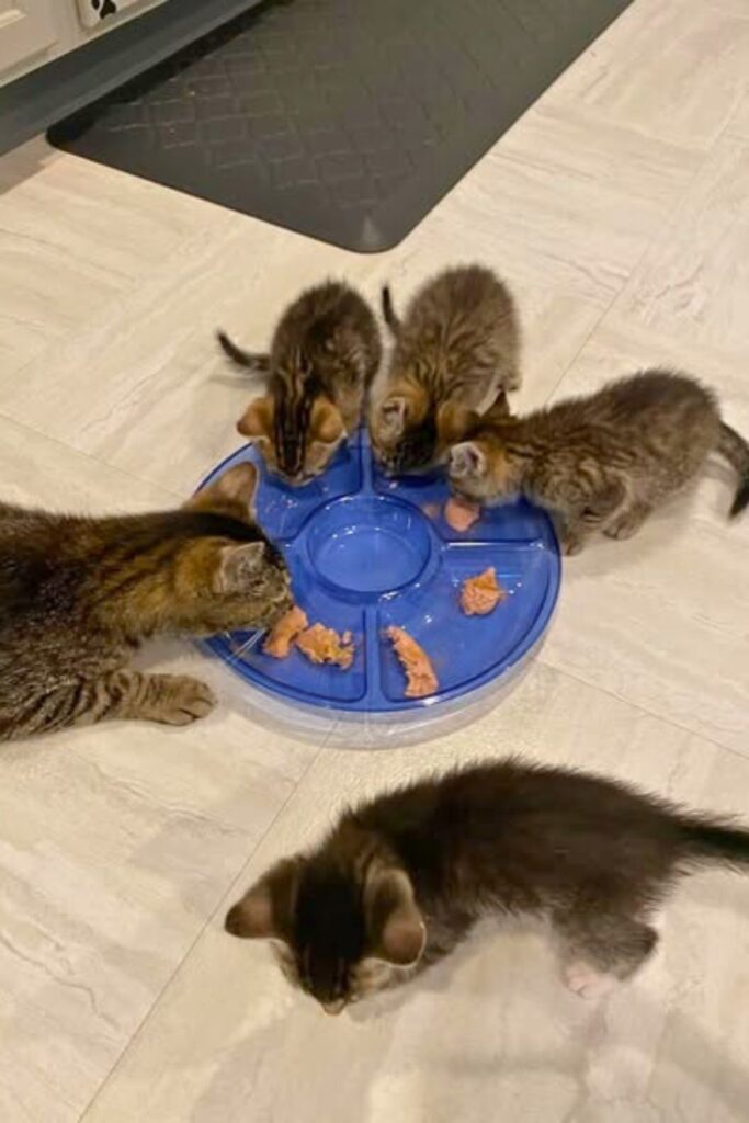 The evenly spaced sections prevent crowding and disputes, ensuring every kitten enjoys their own spot.