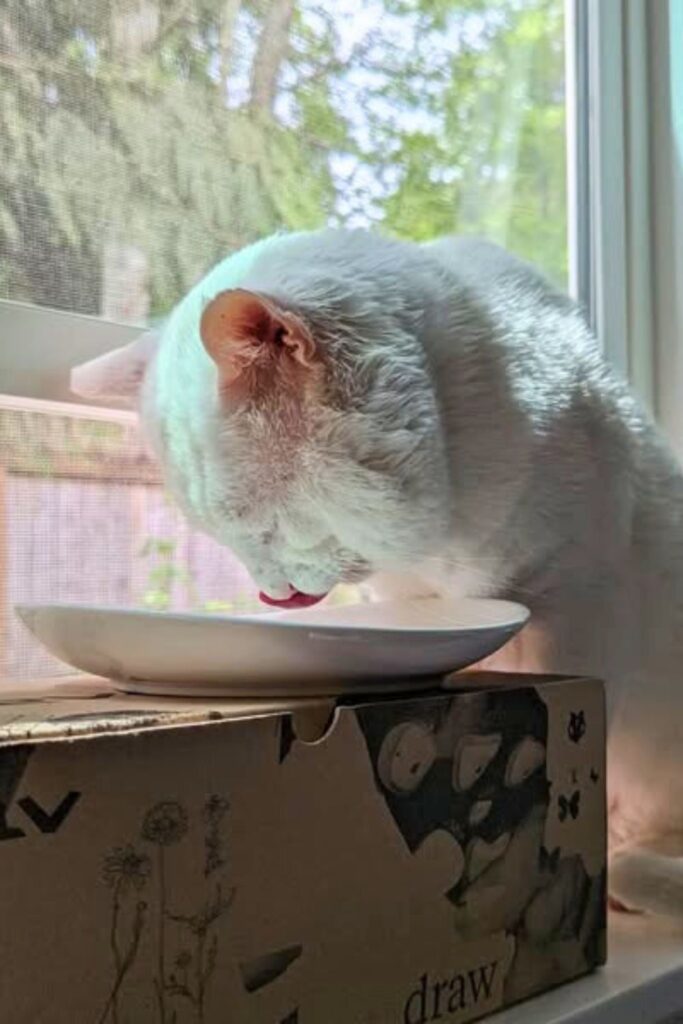 Transform your cat’s mealtime with a low box and plate setup by the window. This DIY idea creates a cozy dining area while giving your cat a scenic view.
