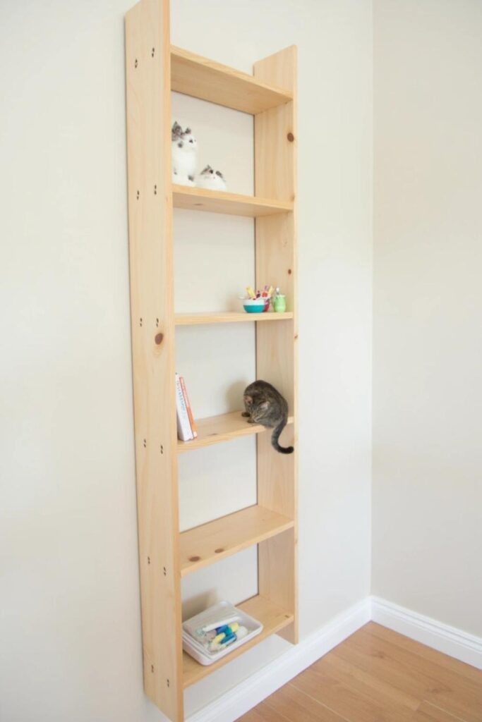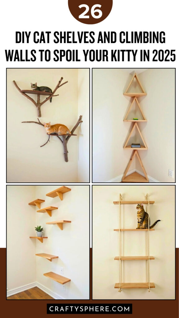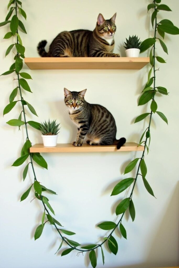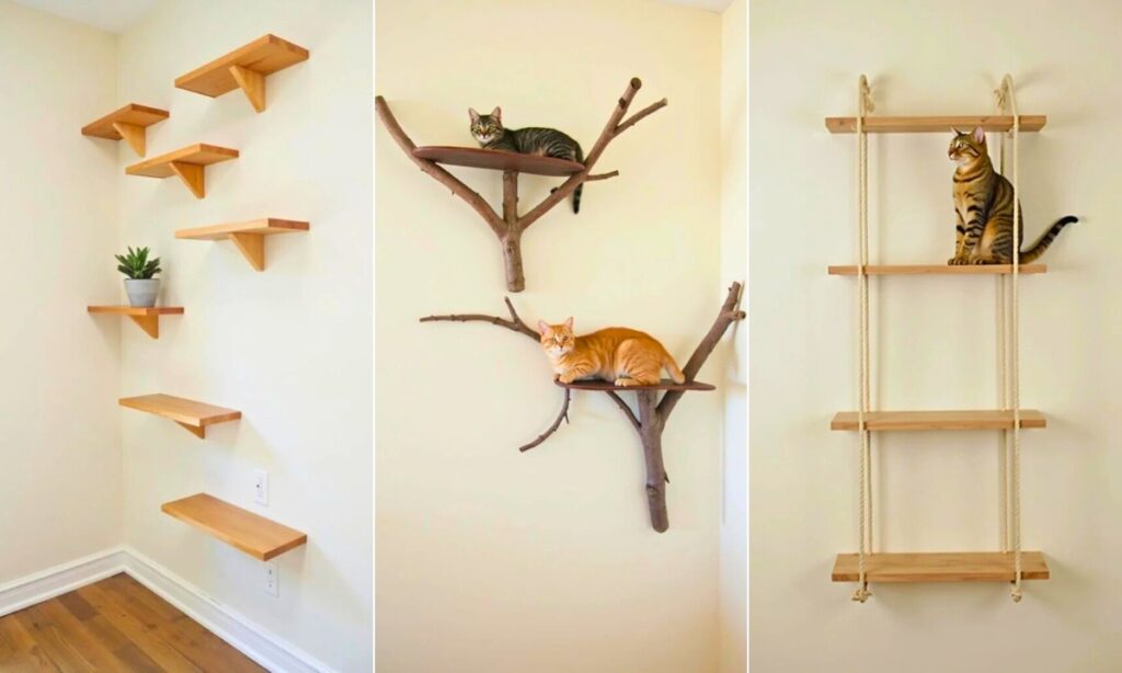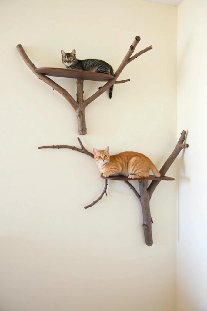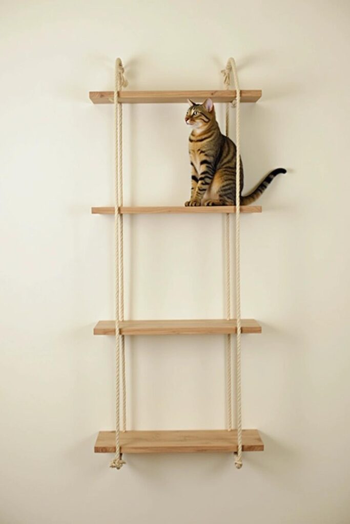 Craft versatile cat shelves that double as scratching posts. Cover each shelf with durable materials like sisal to promote natural scratching behavior.