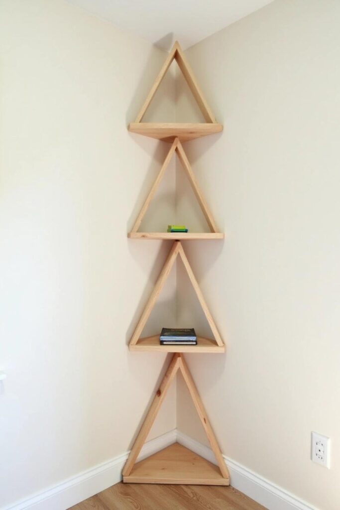 The triangular shelves tucked neatly into a corner make excellent use of often-wasted space.
