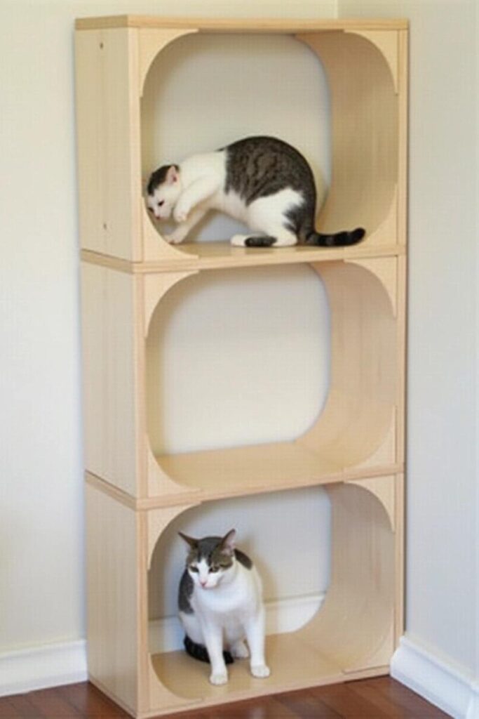 Each cube acts as a little room, offering privacy and a vantage point for cats.