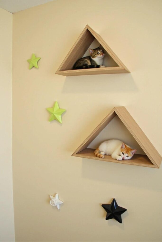 These wooden nooks offer secure resting spots for cats who love to lounge and observe.