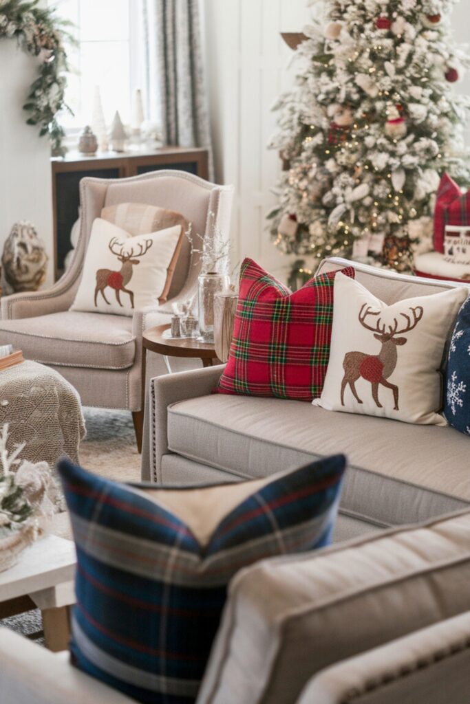 Choose designs featuring playful reindeer, charming plaid, or delicate snowflakes. Mix different textures and colors to add depth and visual interest to your sofas or chairs.