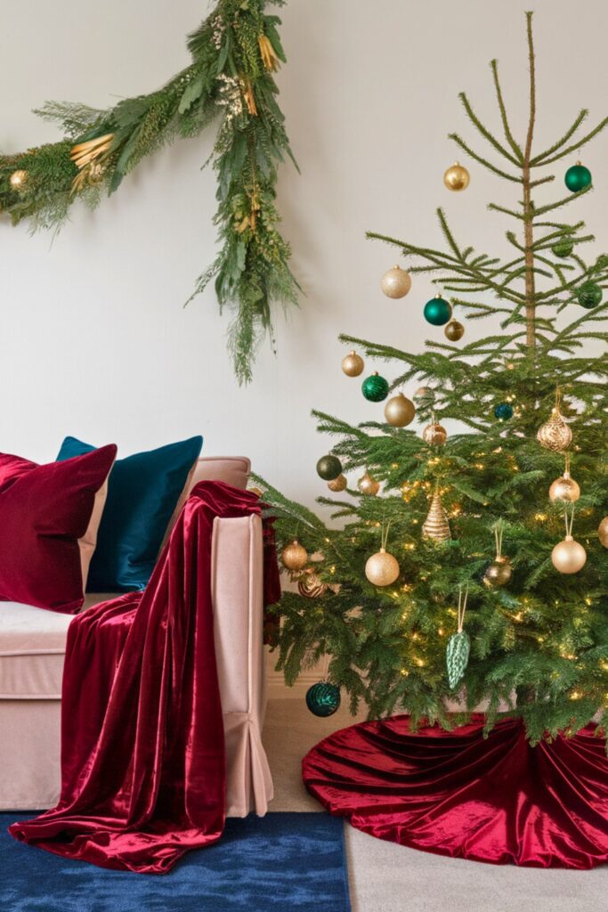 Transform your living room into a haven of luxury by adding velvet accents. Imagine the rich texture of velvet throw blankets and pillow covers enhancing your space. A velvet tree skirt can be the finishing touch to your holiday decor.