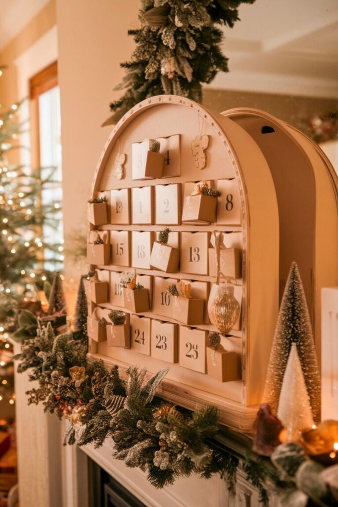 Transform your living room into a festive haven with an Advent Calendar Display that doubles as a delightful piece of decor. Opt for a unique, reusable calendar crafted from wood or fabric and position it prominently on a shelf or mantel.