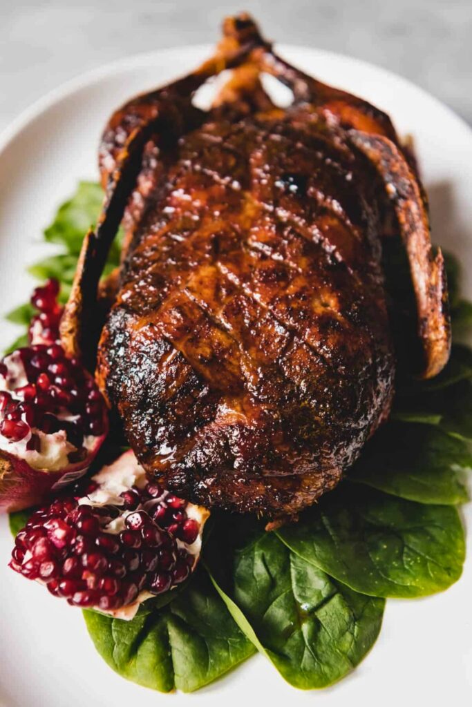 Roast it at 375°F until the skin is beautifully crispy. Every 15 minutes, brush more honey mixture on for an even, shiny glaze.