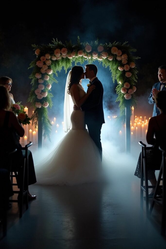 Add a dreamlike atmosphere to your wedding with a fog machine, especially during key moments like your ceremony or first dance.