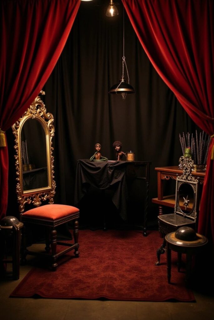 This corner becomes a fun, interactive spot while blending into your dark fairytale theme, perfect for capturing memories that reflect the mood of the day.