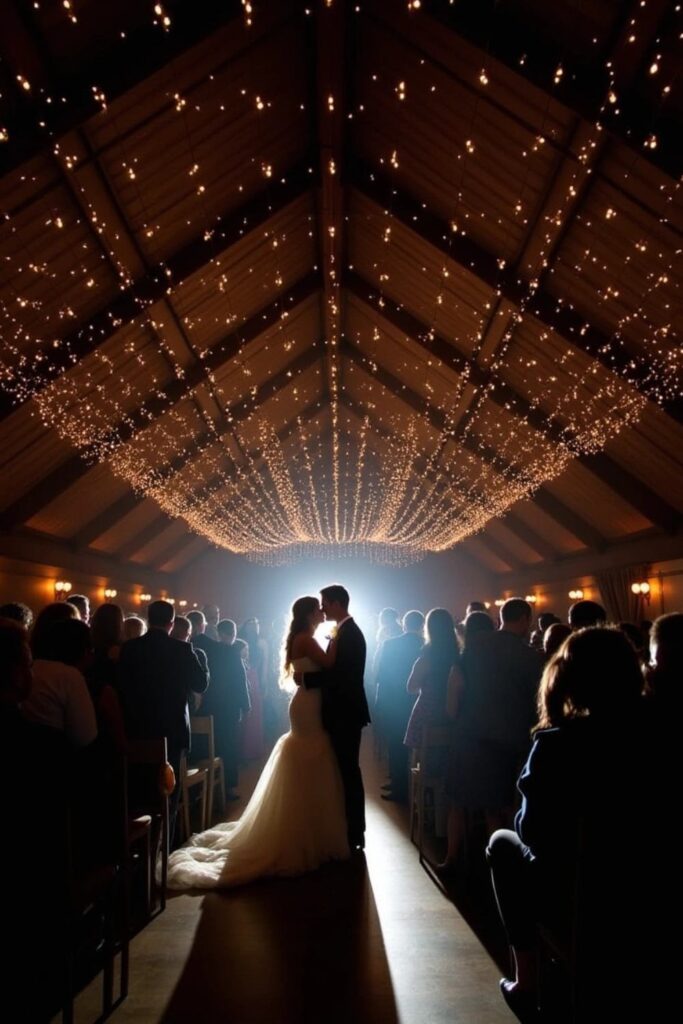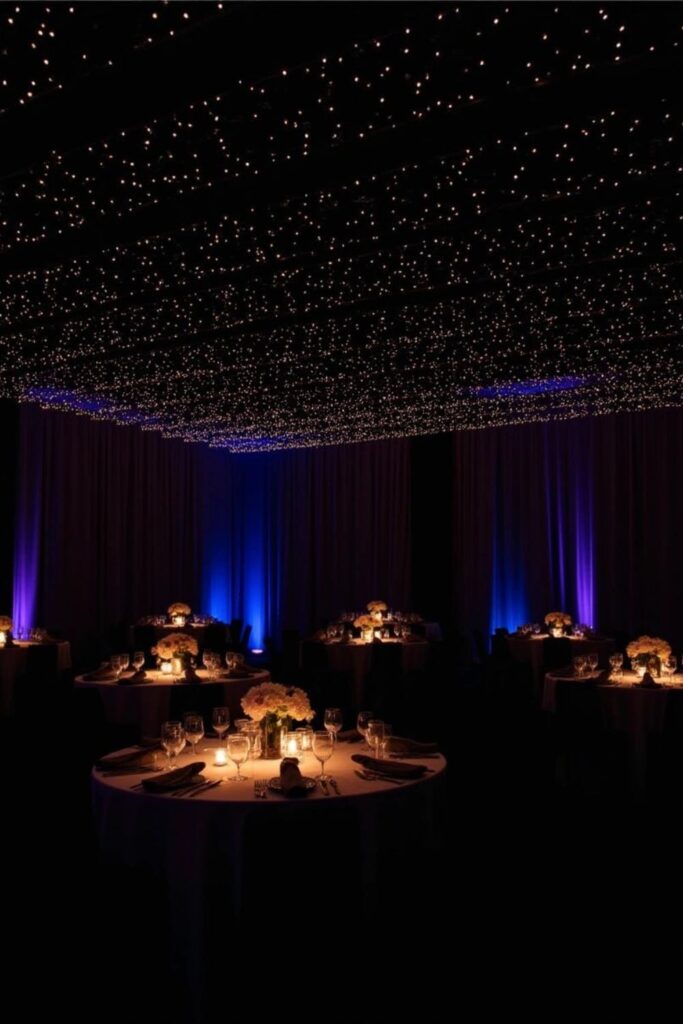Transform your reception with a starry night ceiling created by twinkling LED lights.