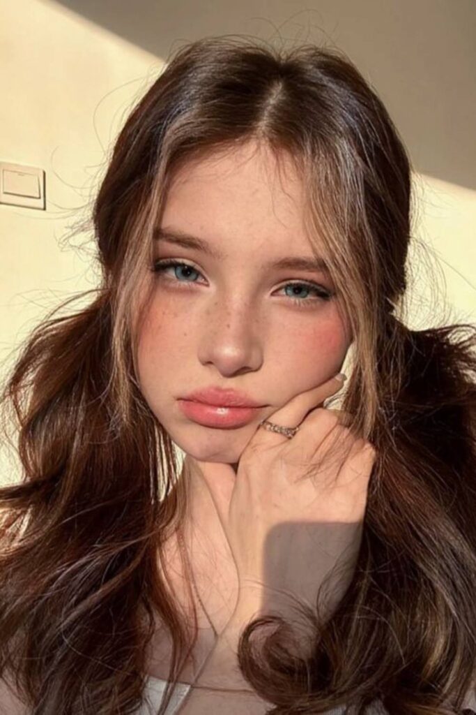 This look is best suited for hair with the product or natural texture, ensuring the buns remain intact. Softening the style, a few loose strands around your face enhance the casual yet cute aesthetic.