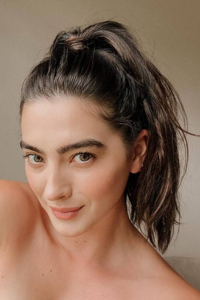 For a casual, chic look, try a high messy ponytail. Start by gathering your hair high on your head and securing it with an elastic. Let some strands fall naturally to add to the style’s relaxed vibe.