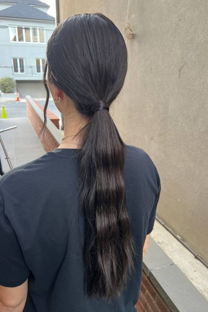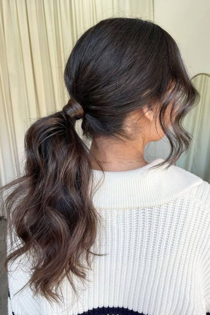 Achieve a sophisticated look with the Wrapped Low Ponytail. Gather your hair into a low ponytail and secure it with an elastic band. Then, take a small section of hair from the ponytail and wrap it around the base to cover the elastic.