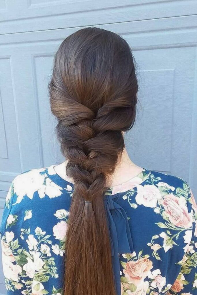 The loose twisted pull-through braid is perfect for giving your hair an elegant vibe, especially on days when washing isn’t an option. Begin by parting your hair and gathering sections along the back to form a pull-through braid.