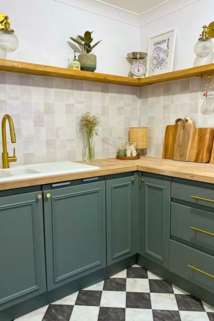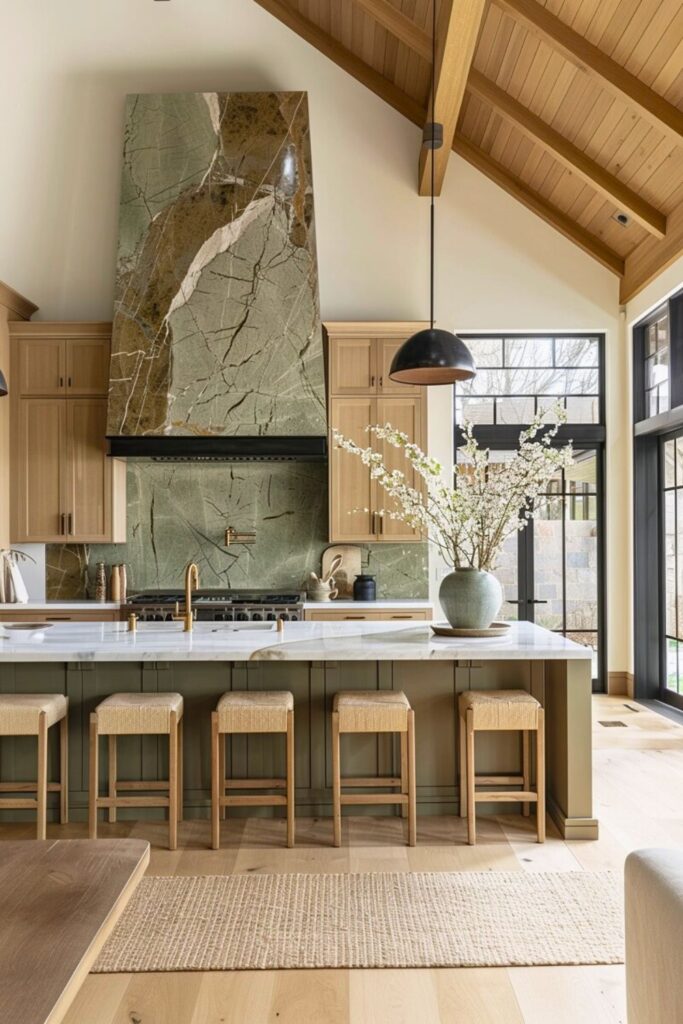 This harmonious blend of green tones and natural textures brings a refreshing and chic aesthetic to any kitchen space.