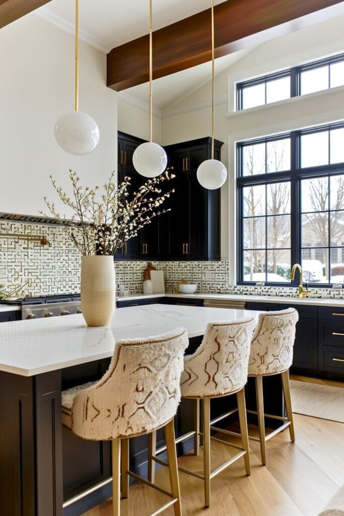 Embrace modern playfulness with a geometric black-and-white patterned backsplash.