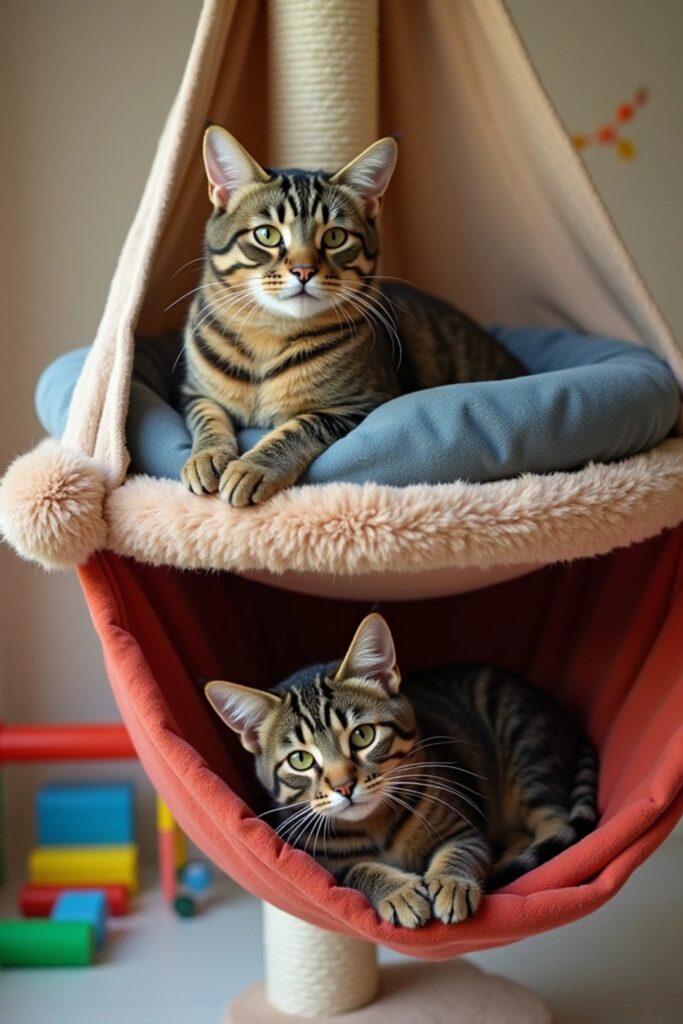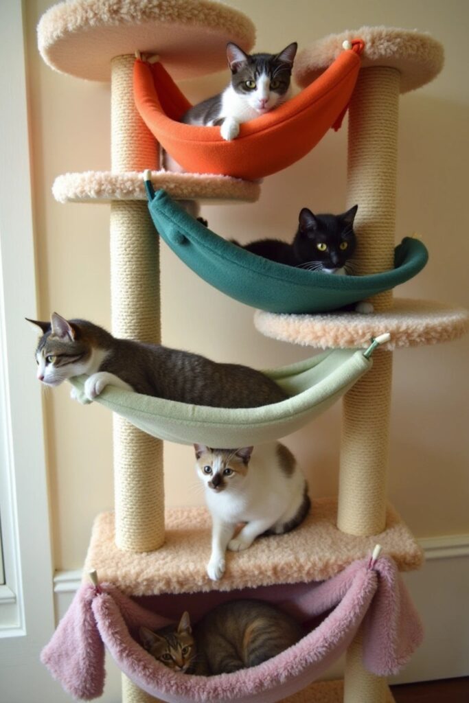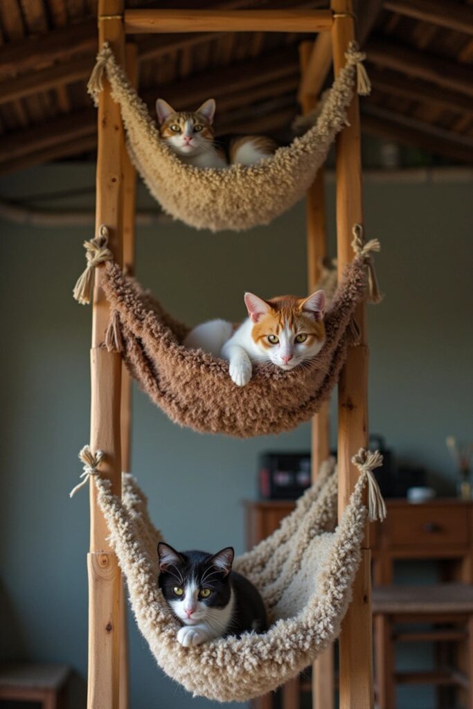 Each level becomes a gentle swaying hammock, satisfying your cat’s love for climbing and resting.