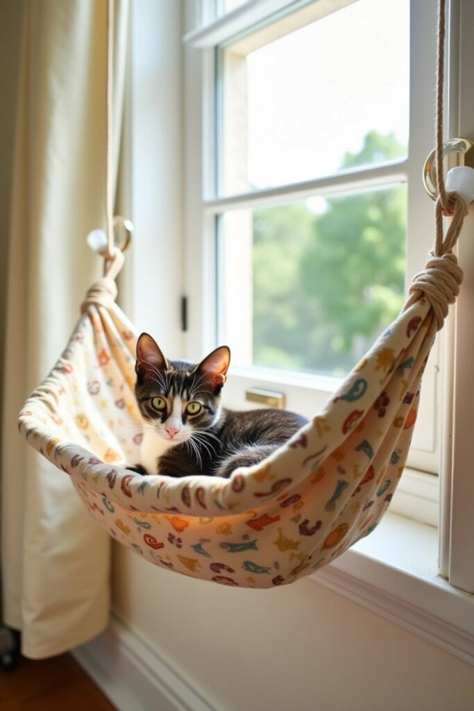 1. Window-Mounted Cat Hammock