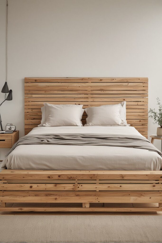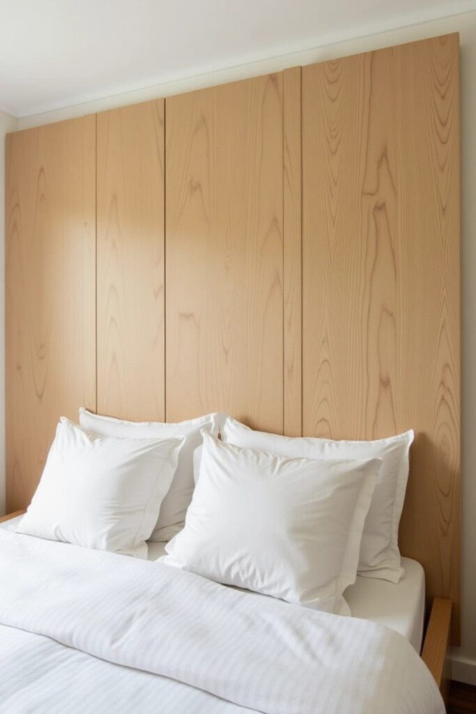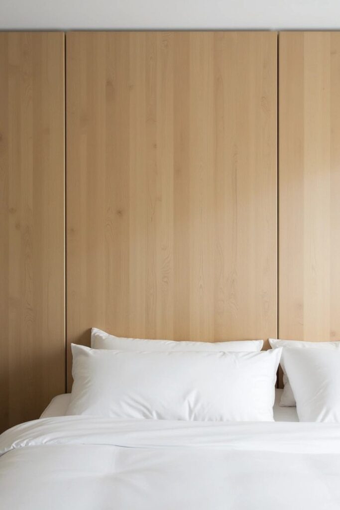 Transform your bedroom into a serene retreat with a Minimalist Panel Headboard. This design features smooth, vertical wooden panels that bring a touch of modern elegance to any space.