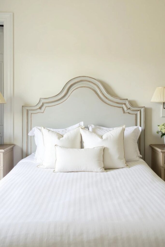 Bring a touch of old-world charm to your bedroom with a vintage French-style headboard. This headboard features a beautifully curved wooden frame that looks like it came straight from a fairy tale.