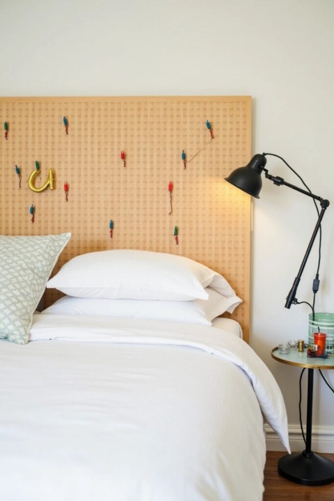 For those who love to change things up, the pegboard headboard is a perfect fit. This unique headboard is made from a big wooden pegboard, which you can personalize in countless ways.