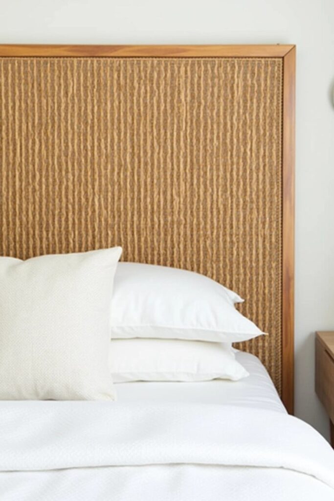 Add texture and a natural element to your space with a Woven Jute Wood Frame Headboard. This unique headboard combines earthy materials by framing woven jute within a wooden border.