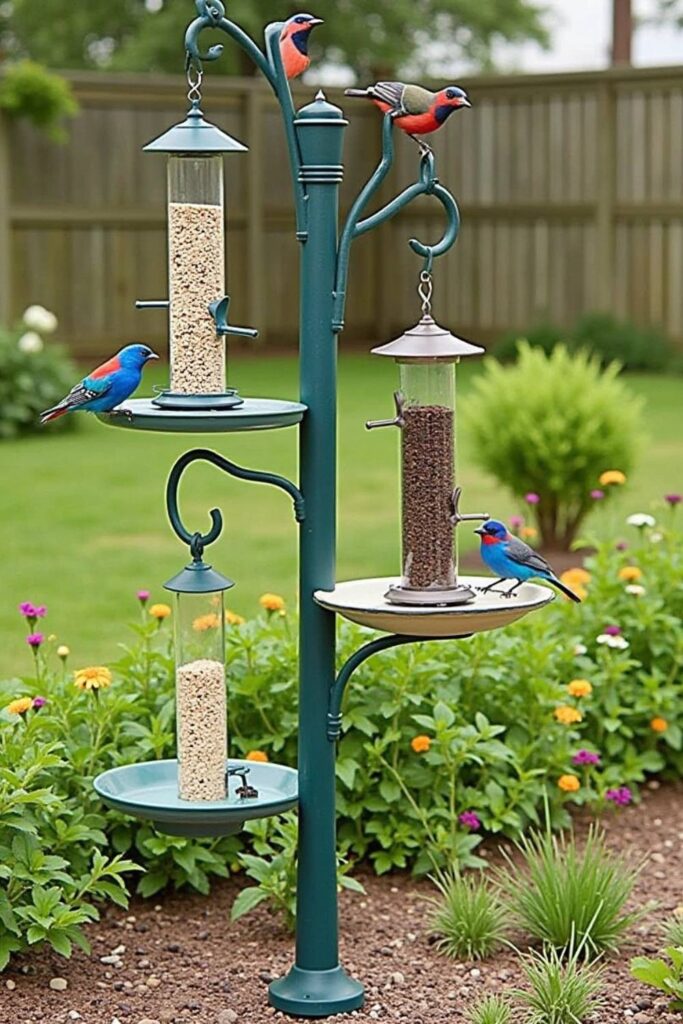 Invite a delightful array of colorful birds to your backyard with a Bird Feeder Station. This setup is both a visual treat and a sanctuary for birds. Start by installing a metal or wooden pole and attach multiple feeders at different heights.