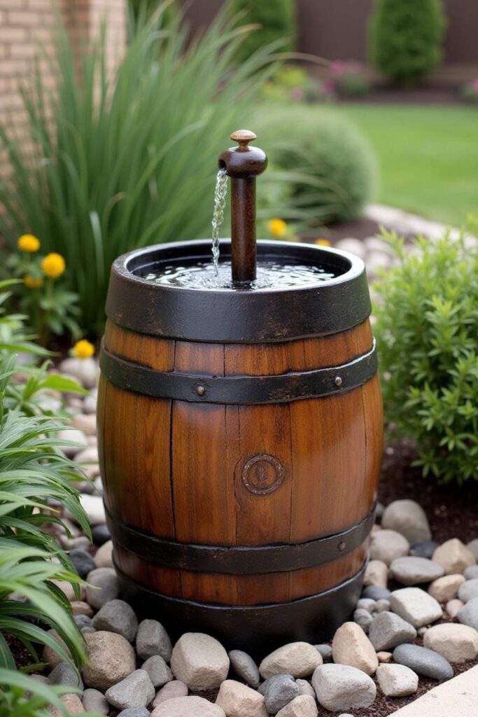 Add a touch of rustic charm to your backyard with a barrel water fountain. This DIY fountain uses a classic wooden barrel, bringing an old-world feel to your outdoor space.