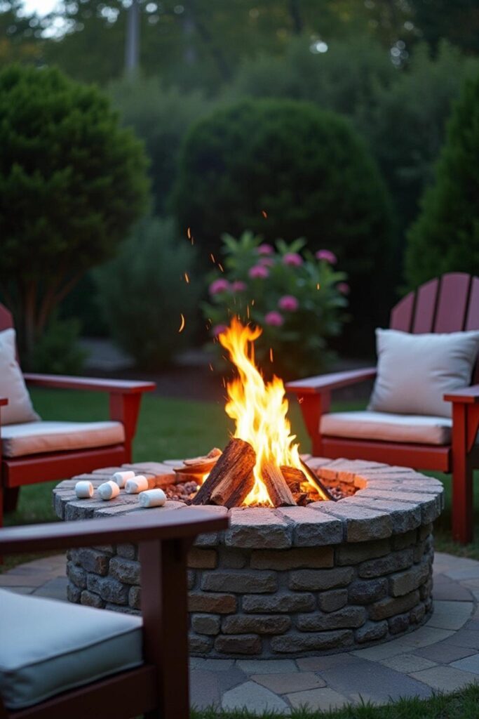 Place logs in the center and keep marshmallow sticks handy to set a fun, campfire vibe. Surround the fire pit with comfortable wooden chairs, providing a welcoming place to relax and chat.