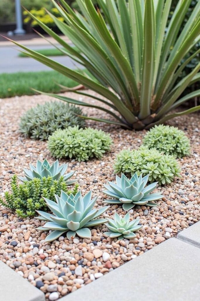 This arrangement not only looks beautiful but is also eco-friendly and easy to care for, making it perfect for areas with limited water or homeowners wanting hassle-free landscaping.