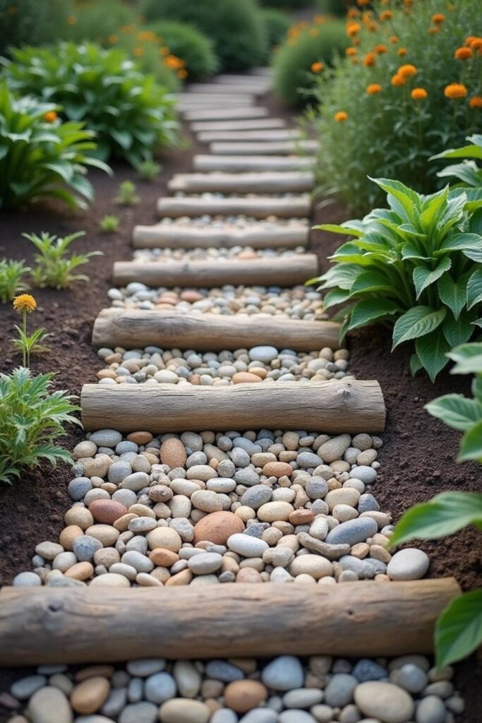 27. Log and Pebble Garden Walkway