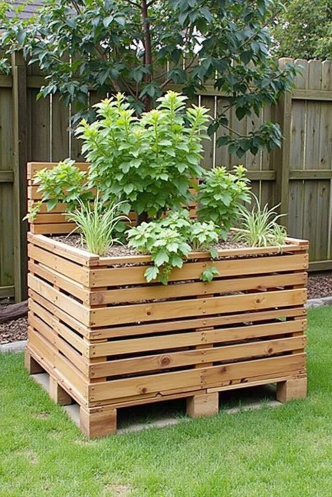 Transform old wood pallets into a chic and functional garden planter that elevates your backyard’s aesthetic. This budget-friendly DIY project involves stacking pallets to form a rustic, box-like structure.