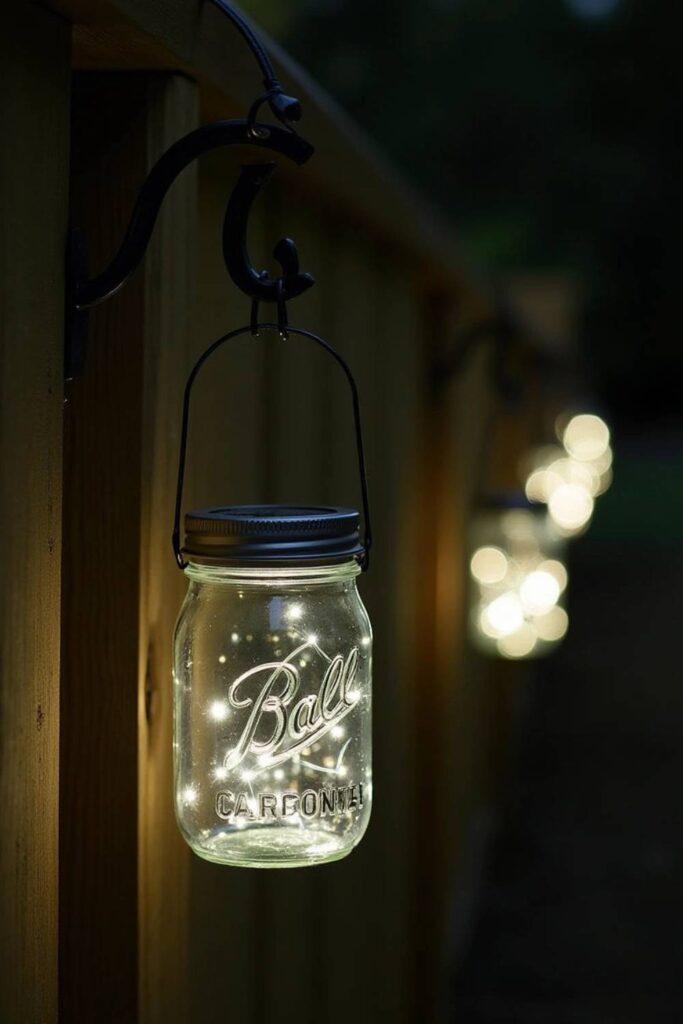 You can hang them along a fence or beneath a pergola to light up paths and seating spots. This idea is not only budget-friendly but also kind to the environment, adding a touch of charm to your backyard effortlessly.